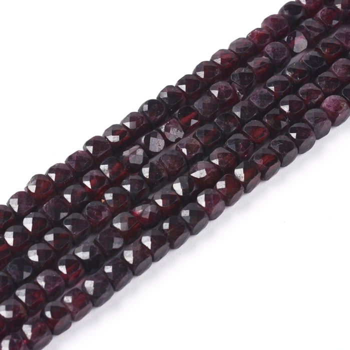 Бусины Натуральный Гранат Кубик Граненые, 4х4х4мм, Отверстие 0.8мм, около 83шт/37см/нить, (УТ100030876)