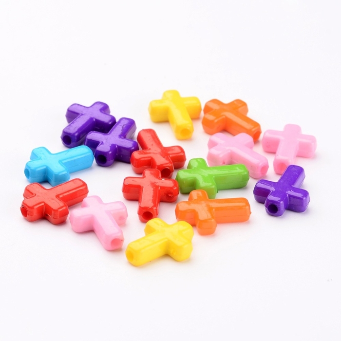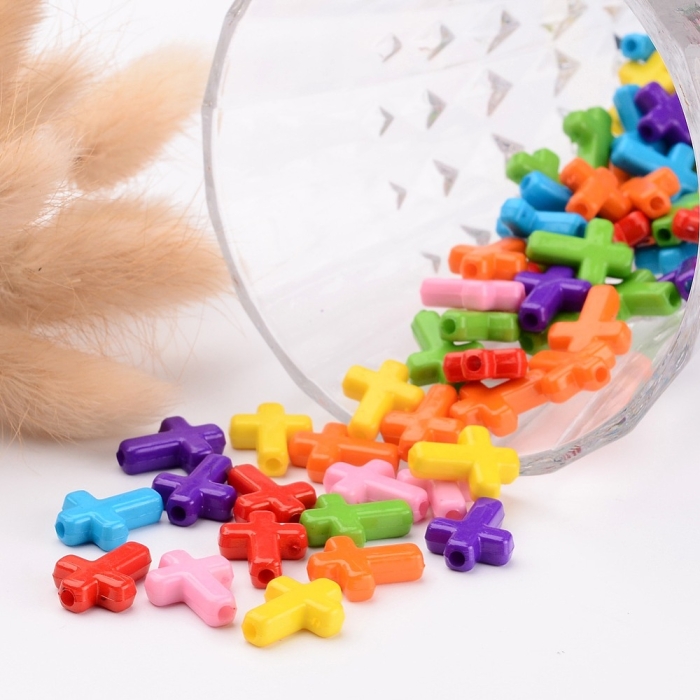 Бусины Акриловые Непрозрачные, Крест, Микс, 16х12х4.5мм, Отверстие 2мм, около 58шт/25г, (УТ100030784)