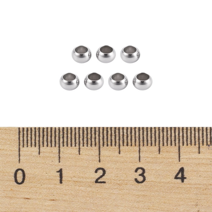 Бусины-разделители, Нержавеющая Сталь, Гладкие, Рондель, Размер: 5х3мм, Отверстие 3мм, 200шт/упаковка, (УТ100030948)