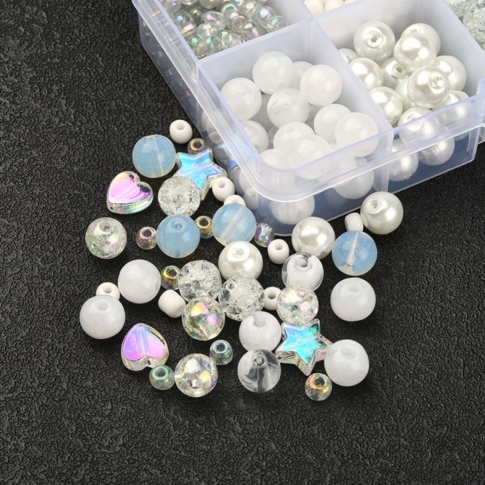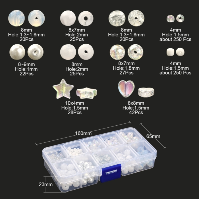 Набор для Изготовления Украшений, Белый, 130х65х23мм, Отсек 29х23х21мм, Бусины 4-10х3-9мм, Отверстие1-2мм, около 711шт/набор, (УТ100031032)