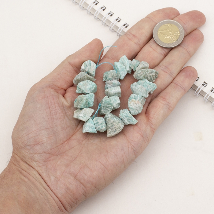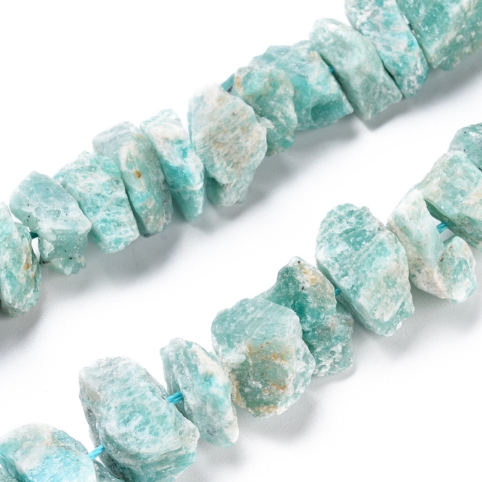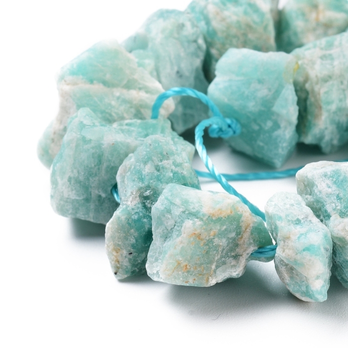 Бусины Натуральный Амазонит, Необработанные Самородки, На нитях,