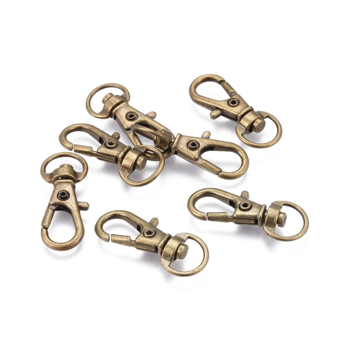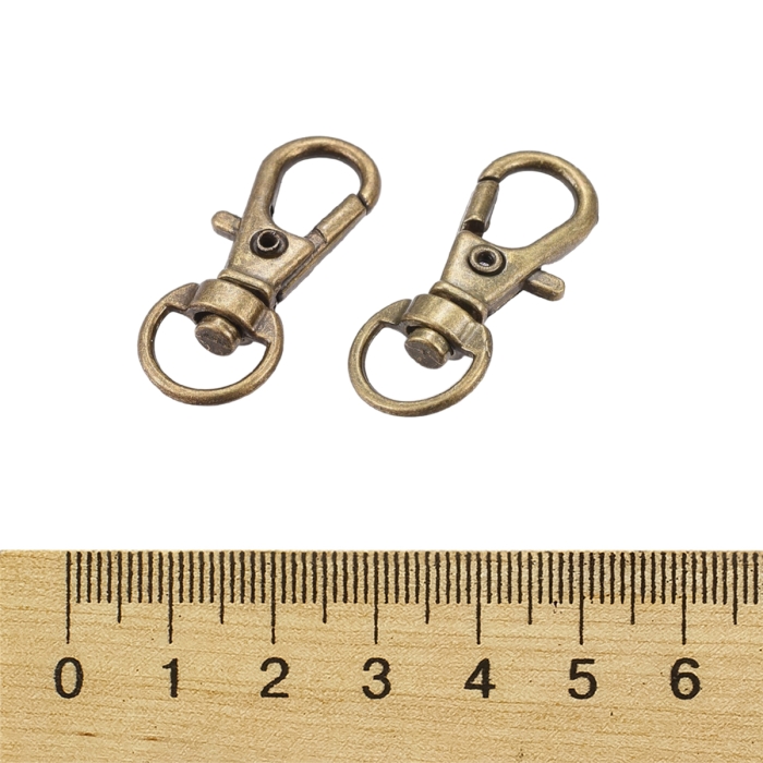 Застежка Поворотный Карабин-Лобстер, Сплав, Цвет: Бронза, Размер: 30.5х11х6мм, Отверстие 5х9мм, (УТ100031114)