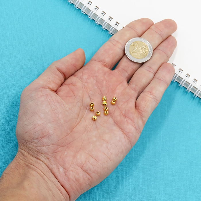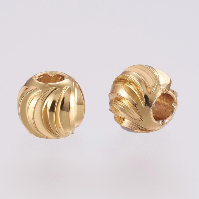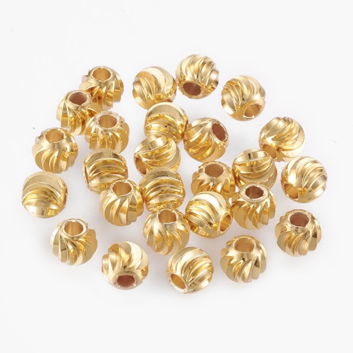 Бусины Латунь, Круглые, Рифленые, Стойкое Покрытие, Позолота 18К, 4х3мм, Отверстие 1мм, (УТ100031120)
