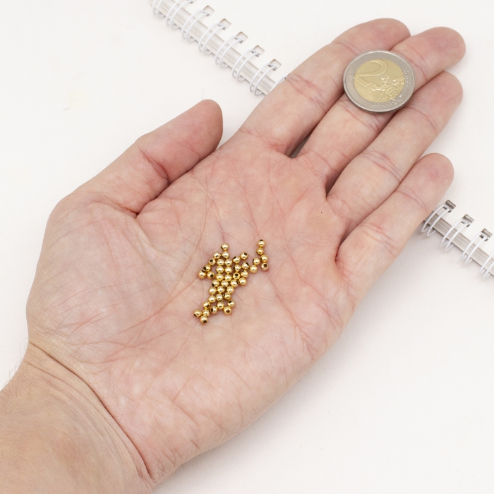 Бусины Нержавеющая Сталь Круглые, Полые, Золото, 3х2.5мм, Отв-тие 1.2мм, (УТ100031165)