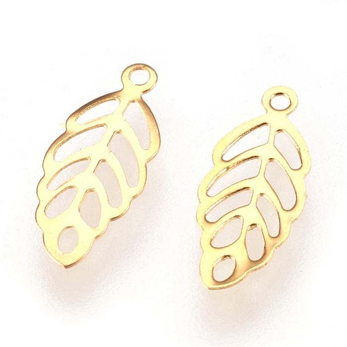 Кулон Подвеска Лист Нержавеющая Сталь, Покрытие Золото 18К, 13х5.5х0.2мм, Отверстие 0.8мм, (УТ100031203)