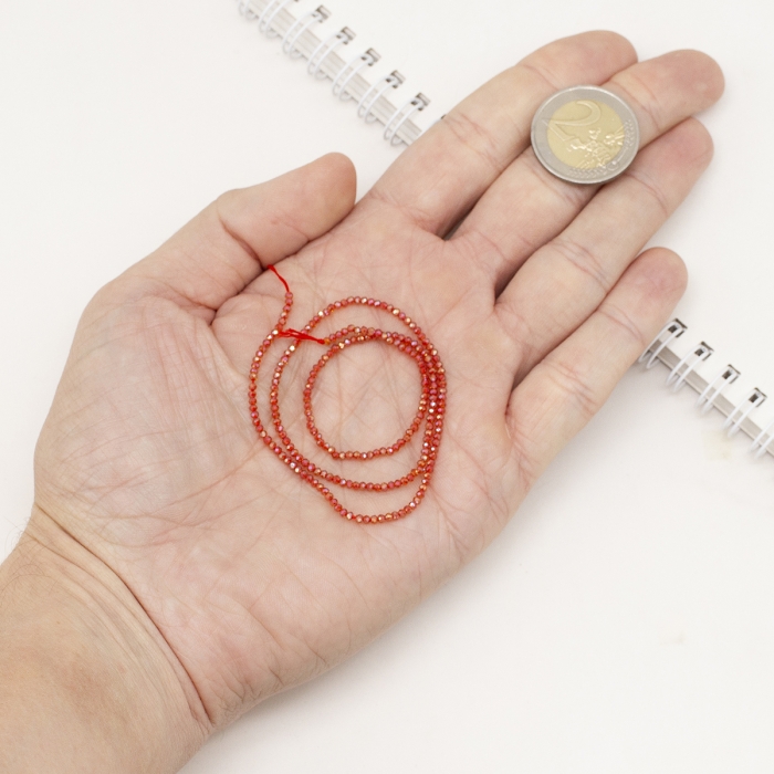 Бусины Гальваника Стекло, Граненые, Рондель, Радужное Покрытие, Цвет: Светло-коралловый, Размер: 2х1.5мм, Отв-тие: 0.6мм, около 223-234шт/35-35.5см/нить, (УТ100031217)