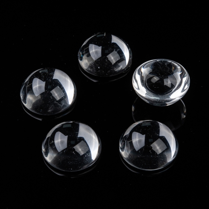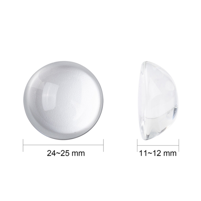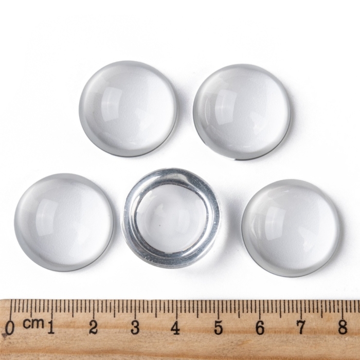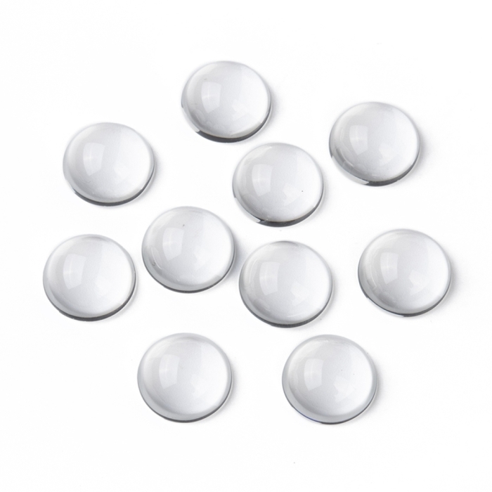 Круглые стеклянные кабошоны — это универсальные элементы для декорирования, отличающиеся гладкой поверхностью и эффектом объема. Они изготовлены из высококачественного стекла, что придаёт им прозрачность и блеск, усиливающий глубину цвета и рисунка основы, с которой они используются. Полукруглая форма придает кабошонам выпуклость, позволяя фокусировать свет и создавать визуальный эффект увеличения изображения под стеклом.