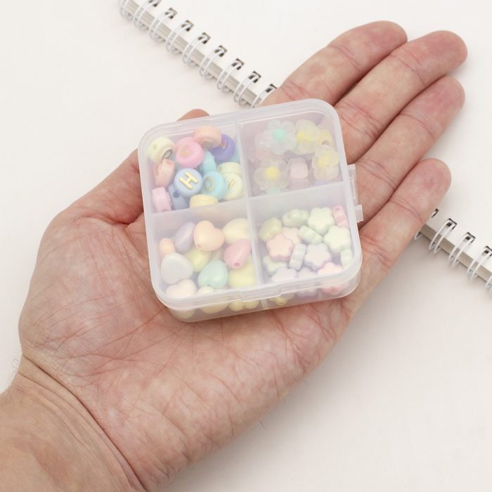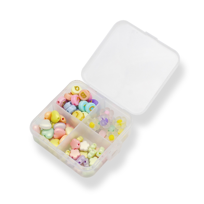 Контейнер для Бусин, Пластик, Бесцветный, Квадрат, Размер: 7.3х6.9х2.4см, 4 отсека, 3.2х3см