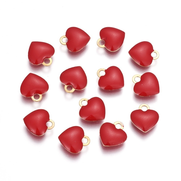 Кулон Подвеска Сердце из Латуни с Эмалью, Стойкое Покрытие Золото 18К, Красный, 10х9х2мм, Отверстие 1.6мм, 10шт/упаковка, (УТ100031404)
