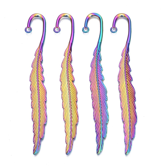 Закладки для Книг из Бижутерного Сплава в форме Листа без Никеля, Кадмия и Свинца Цвет: Радужный
