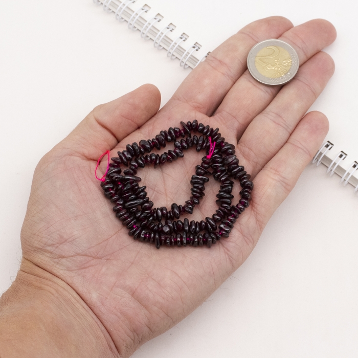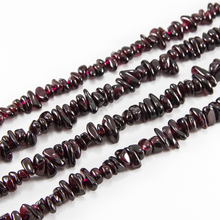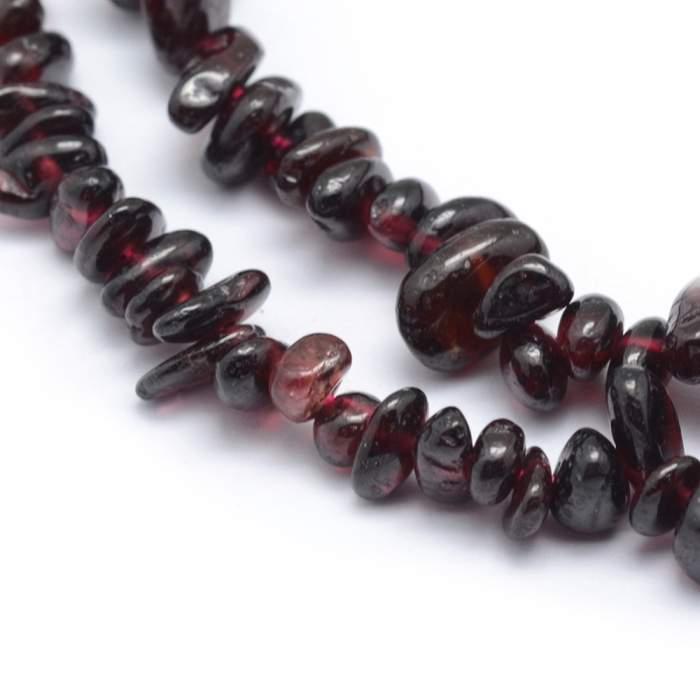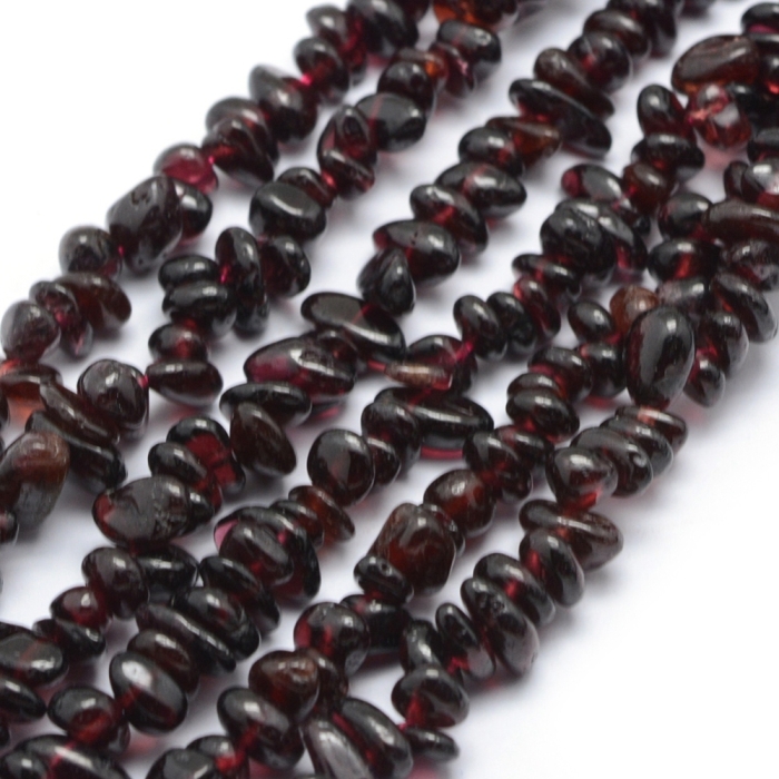 Натуральные бусины из граната в форме крошки. Камень имеет глубокий бордово-красный оттенок с естественным блеском, что придает украшениям роскошный и элегантный вид. Гранат известен как символ любви, страсти и энергии.