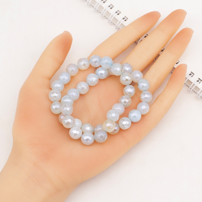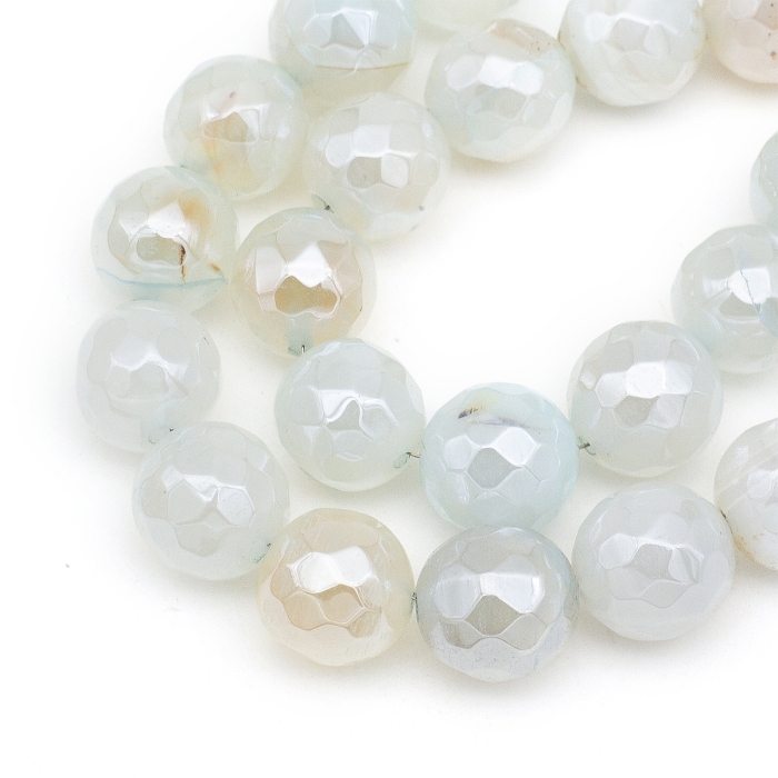 Бусины Натуральный Агат, Круглые Граненые, Гальваника, Перламутровое покрытие, на Нитях, Окрашенные