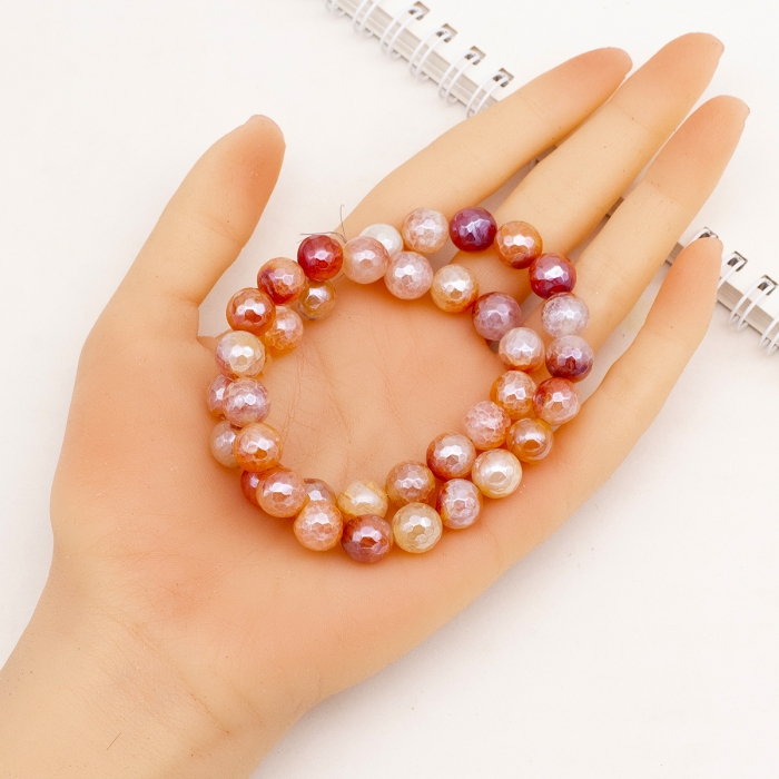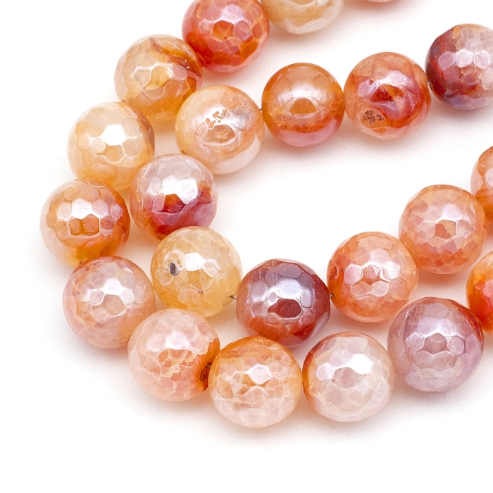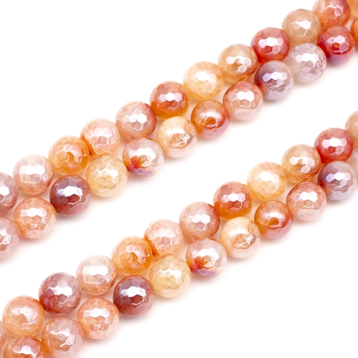 Бусины Натуральный Агат, Круглые Граненые, Гальваника, Перламутровое покрытие, на Нитях, Окрашенные