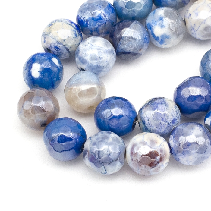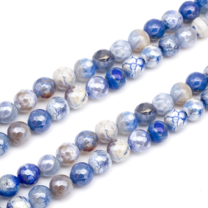 Бусины Натуральный Агат, Круглые Граненые, Гальваника, Перламутровое покрытие, на Нитях, Окрашенные