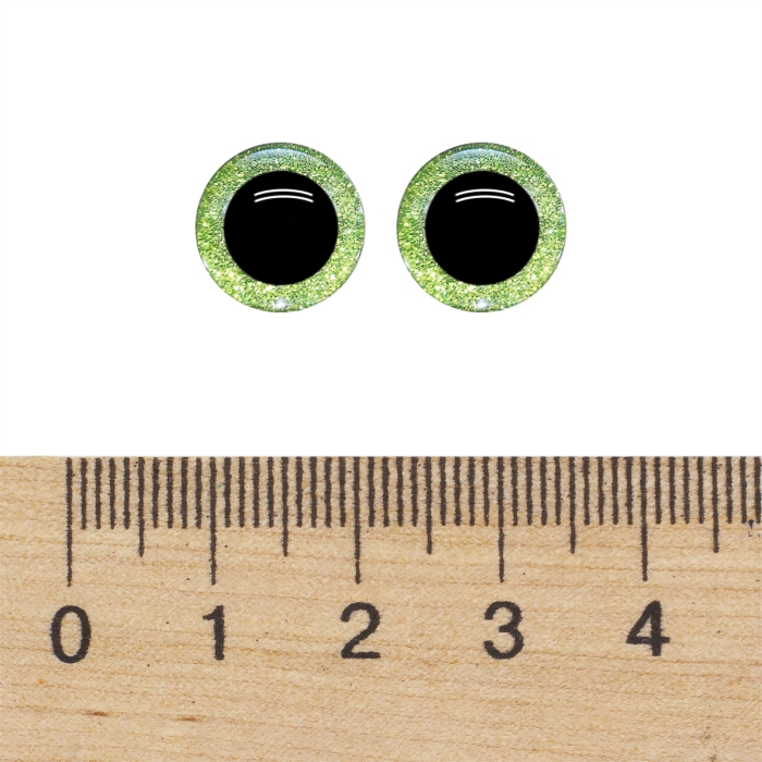 Глазки для Игрушек и Кукол, Эпоксидная Смола, 2 Фиксатора, Зелено-Желтые, 12мм, (УТ100031660)