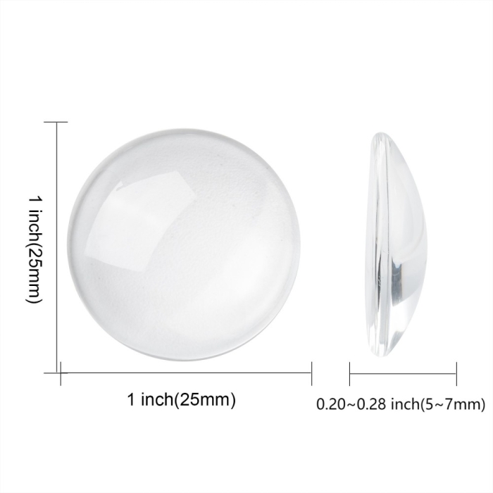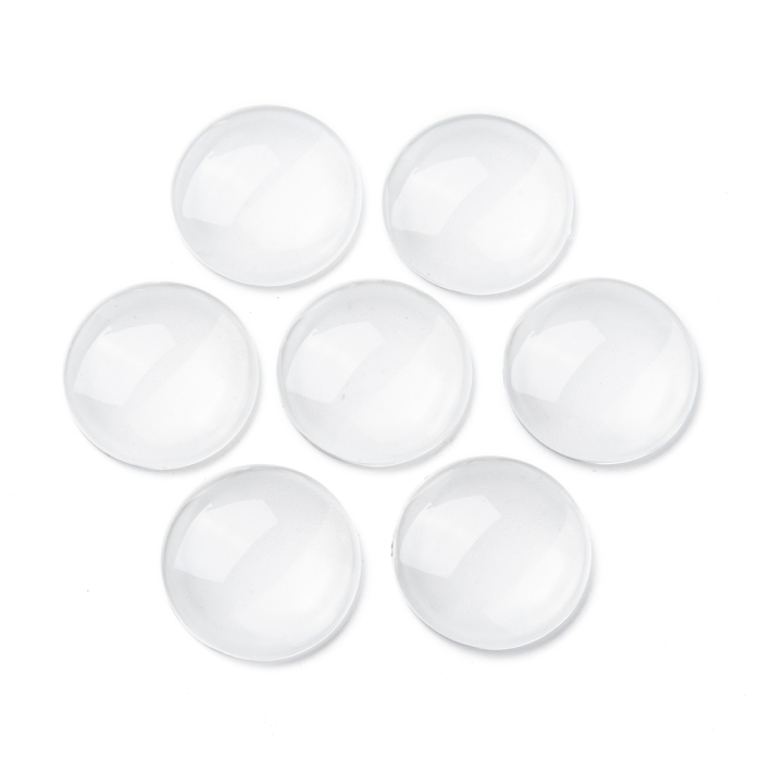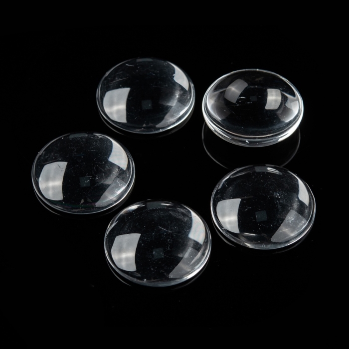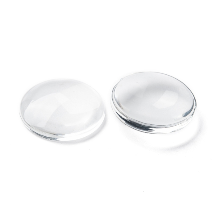 Круглые стеклянные кабошоны — это универсальные элементы для декорирования, отличающиеся гладкой поверхностью и эффектом объема. Они изготовлены из высококачественного стекла, что придаёт им прозрачность и блеск, усиливающий глубину цвета и рисунка основы, с которой они используются. Полукруглая форма придает кабошонам выпуклость, позволяя фокусировать свет и создавать визуальный эффект увеличения изображения под стеклом.