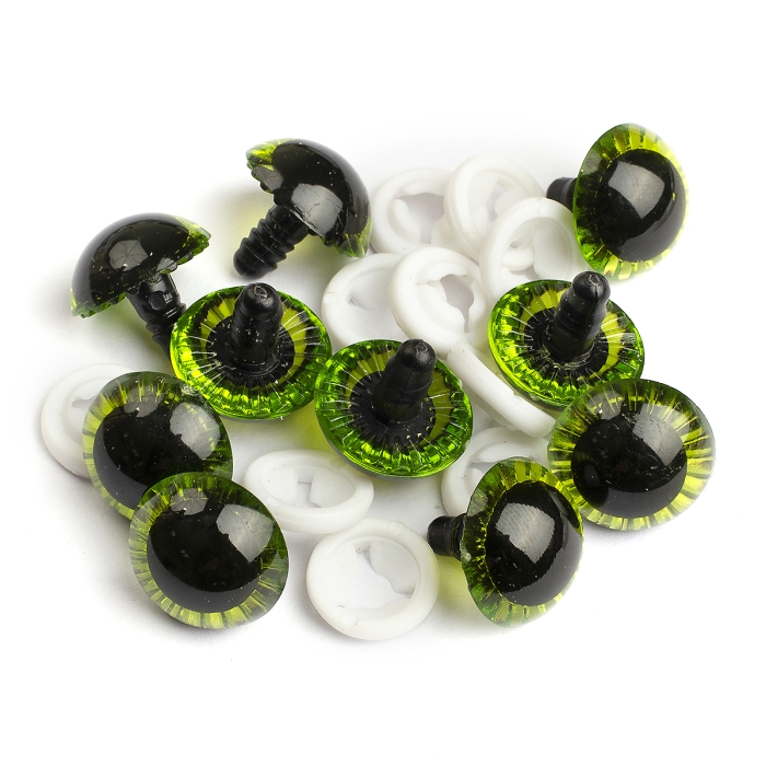 Глазки для Игрушек и Кукол со Штифтом и Фиксатором Пластиковые, Желто-Зеленые, 19.5мм, Фиксатор 15х4мм, (УТ100031934)