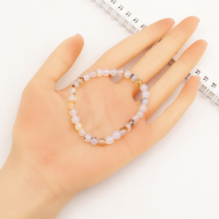 Браслет из натурального агата с круглыми бусинами — элегантное и универсальное украшение на эластичной нити. Агат ценится за свою прочность, разнообразие оттенков и уникальные природные узоры, делающие каждое изделие неповторимым.