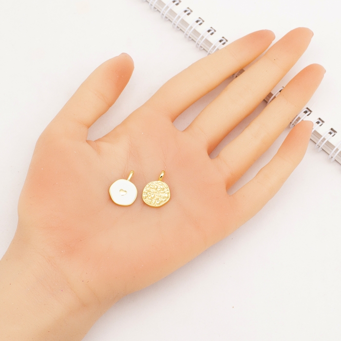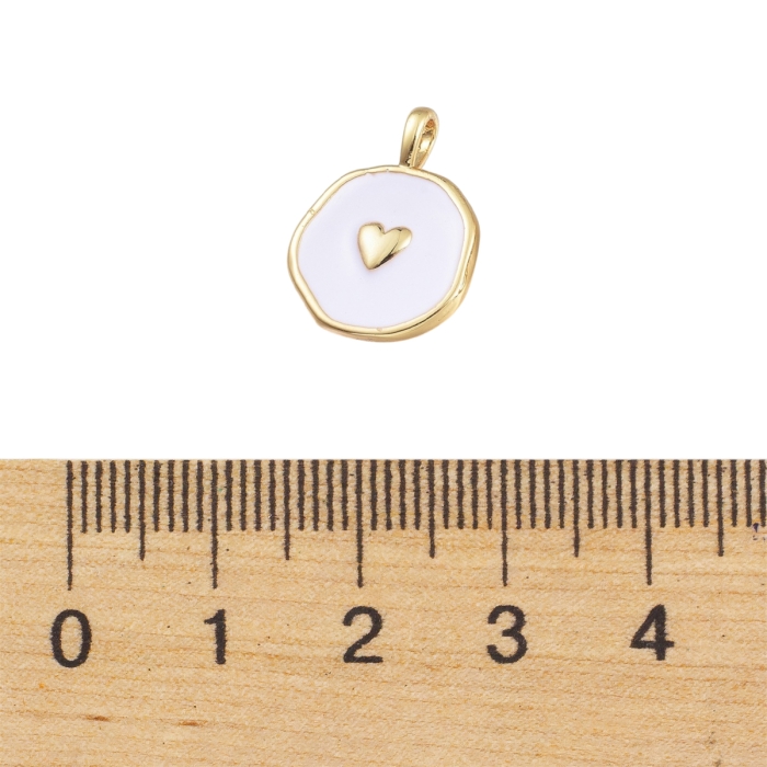 Подвески Кулоны Плоские Круглые с Сердцем, Латунь и Белая Эмаль, Золото, 20х13.5х2.5мм, Отверстие 3.5х2мм, (УТ100032035)