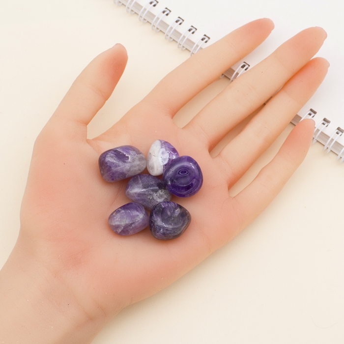 Натуральные аметистовые камни (без отверстий) — это тщательно отполированные камни неправильной формы, которые идеально подходят для использования в энергетических практиках, декоре или терапии. Эти камни обладают ярким фиолетовым цветом, характерным для аметиста, и высоко ценятся за их естественную красоту и свойства. Они используются для балансировки чакр, медитации, рейки и других духовных практик, а также могут служить декоративным наполнением для ваз или подсвечников.