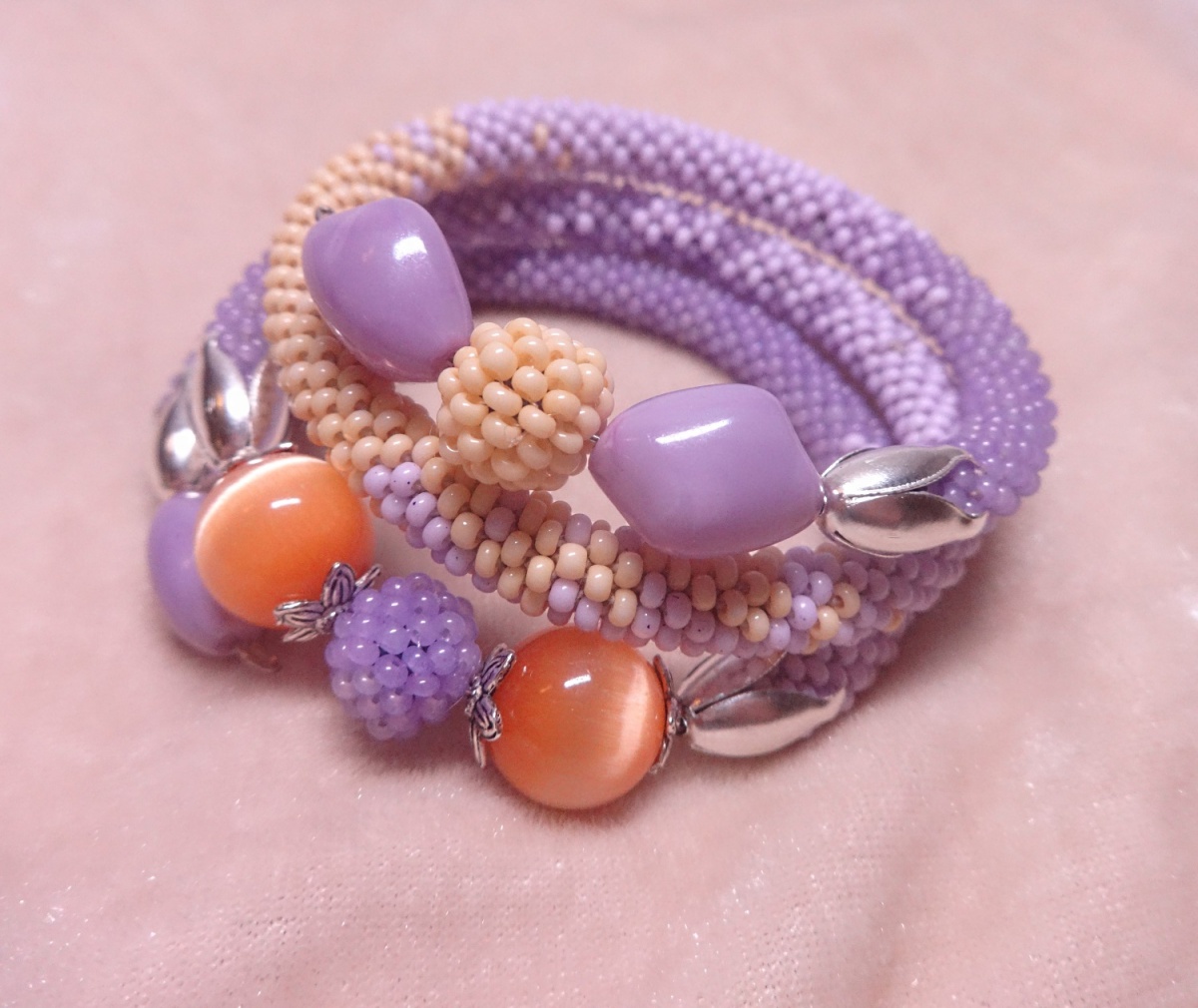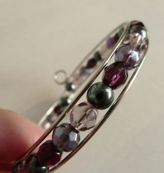 Чтобы придать нужную форму бижутерной сетке либо сплетенному из бисера жгуту, их нанизывают на мемори-проволоку. На концах таких широких браслетов устанавливают декоративные концевики.