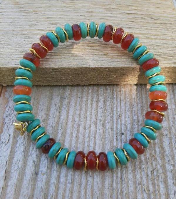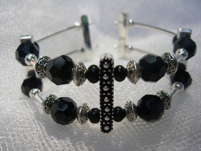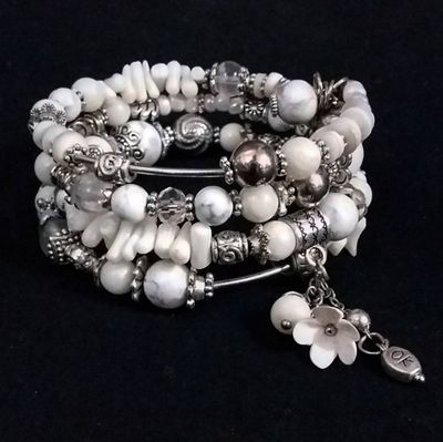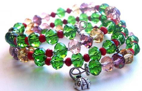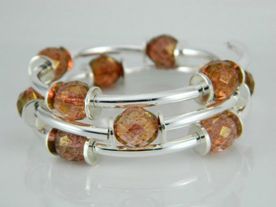 Превосходно смотрятся браслеты, состоящие из нескольких витков, но не растягивающиеся, подобно пружинкам, а скрепленные разделителями.