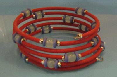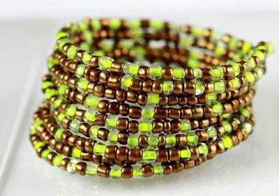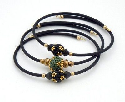 Любимый и наиболее распространенный способ применения мемори-проволоки - это нанизывание многорядных браслетов-пружинок. Вариаций подобной сборки тоже применяется много (а аналогичные комбинации вполне применимы также и в изделиях, состоящих из единичного витка).