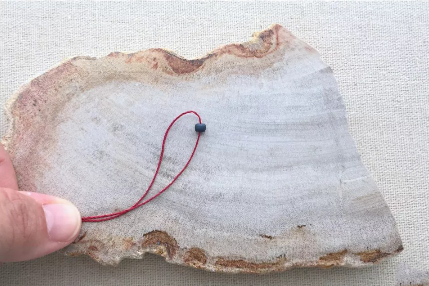 Чтобы сместить узел сверху ближе к бисеринкам, образующим хвост поделки, вставьте кусочек проволоки либо любой другой предмет с заостренным концом в узел - это поможет передвинуть его на нужное место. Проволока будет удерживать узелок немного расслабленным, и вы сможете перемещать его вдоль нитки, прежде чем убрать проволоку и затянуть узелок навсегда.