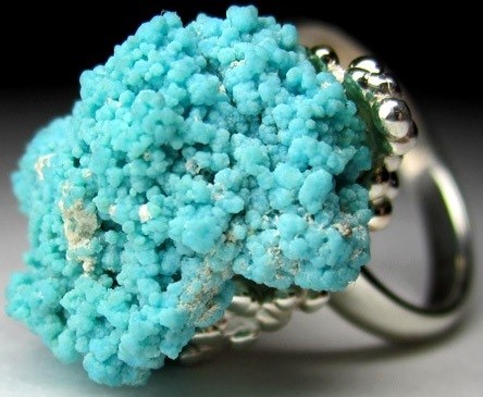 Бирюза с незапамятных времен привлекала внимание людей. Первые ее разработанные месторождения датируются шестым тысячелетием до нашей эры. Минерал представляет собой камень зеленовато-голубых оттенков. Он с глубокой древности несет символику вечной верной любви, счастья и богатства. По шкале Мооса его твердость равняется 5–6, он имеет сложную химическую структуру, являясь соединением алюминия.
