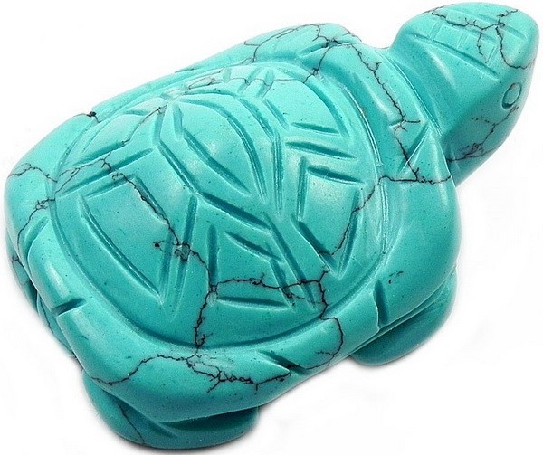 И натуральная, и искусственная бирюза непрозрачна и обладает легким восковым блеском. Ее окраска всегда неравномерная, с контрастными прожилками и вкраплениями, а основной, голубой цвет напрямую зависит от возраста кристалла. Светлый, близкий к белому, цвет говорит о том, что он совсем еще молодой, «созревшая» бирюза характеризуется небесно-голубыми оттенками и ценится выше всего, а если вы видите кристалл зеленоватого цвета, значит перед вами довольно старый камешек. Это объясняется тем, что голубой цвет бирюзе придает медь, которая постепенно вытесняется оксидом железа, окрашивающим камень в зеленые оттенки.