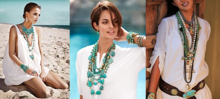 Как видите, бусы из бирюзы могут служить универсальным украшением, удачно сочетаясь с различными образами и стилями.