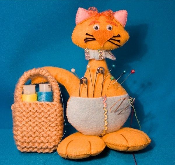 18. Симпатяга-кот, который поможет мотивировать маленьких рукодельниц заняться шитьем или вышивкой и поможет содержать швейные принадлежности в порядке.