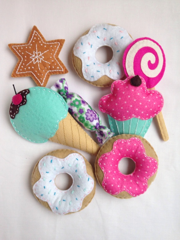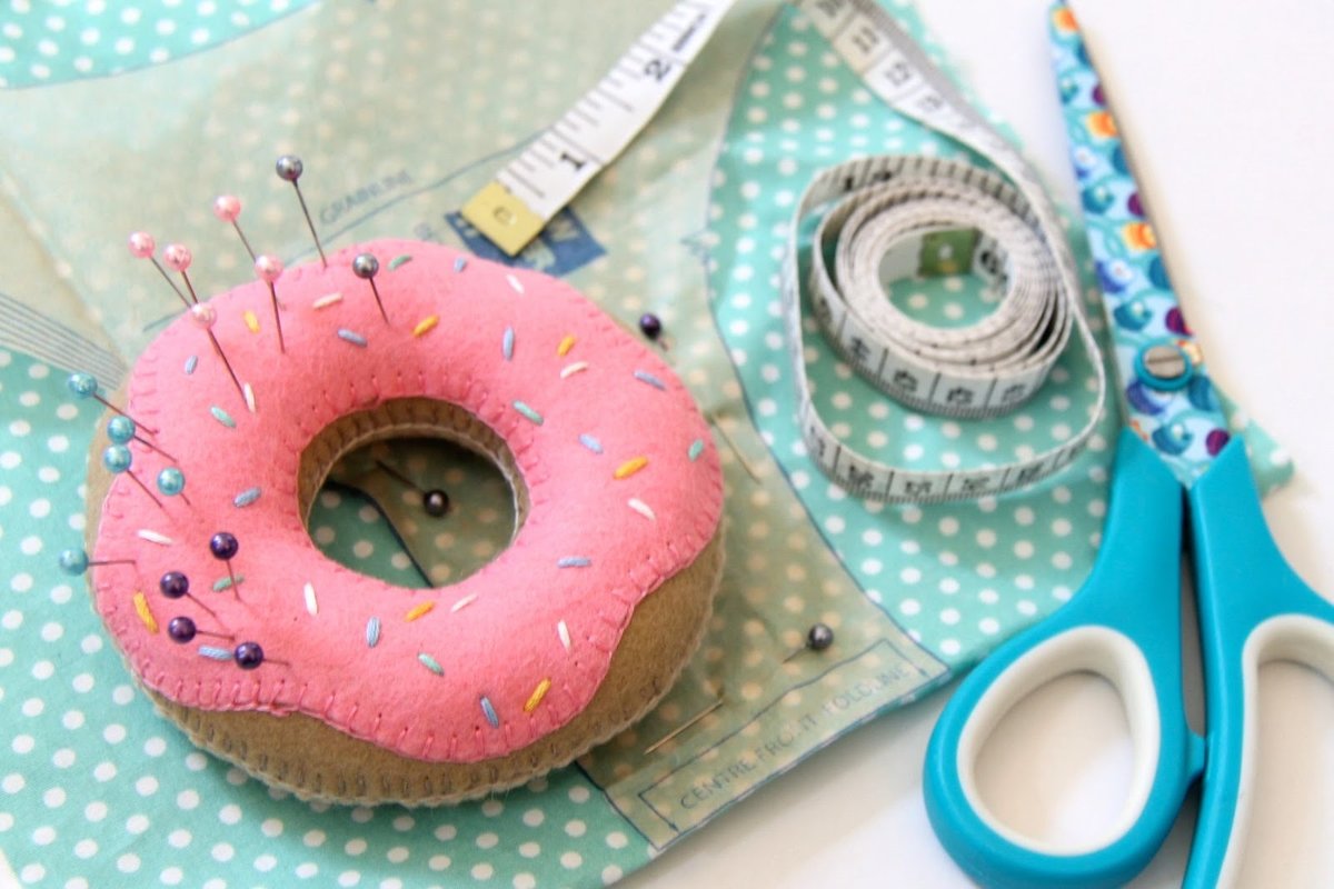 10. Игольница в виде пончиков, имбирных пряников, мороженного и конфет – простые для изготовления формы, а выглядят мило и задорно.