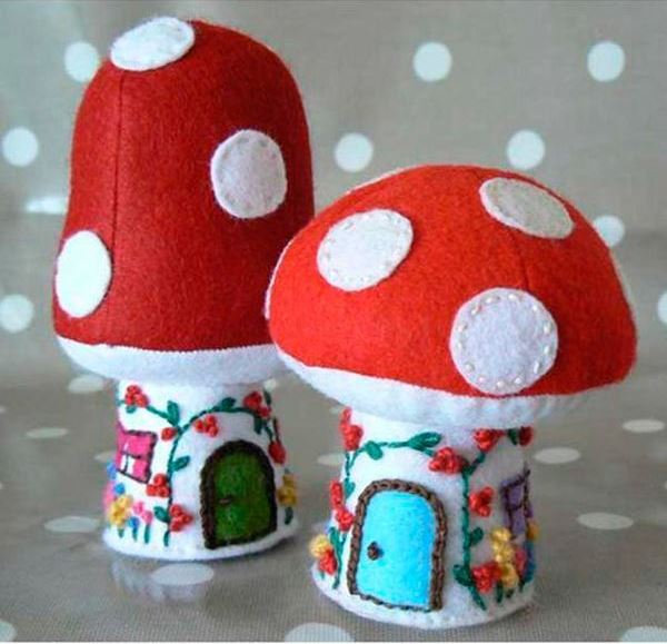 21. Автор этих бутузов-мухоморов украсил их ножки вышивкой и превратил в сказочные домики.