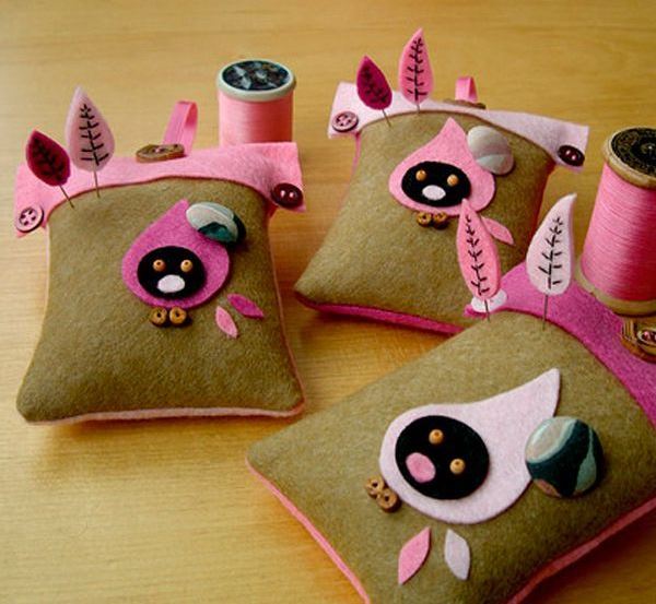 24. Игольницы, украшенные настоящими игрушками ручной работы – идея для тех, кому хочется постараться, но получить в результате своих трудов очаровательный аксессуар, не только практичный и функциональный, но и вдохновляющий на творчество.