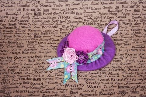 3. Милейший аксессуар в виде фетровой шляпки, украшенной ленточкой с принтом и крохотными цветками из лент – настоящий маленький и стильный шедевр.