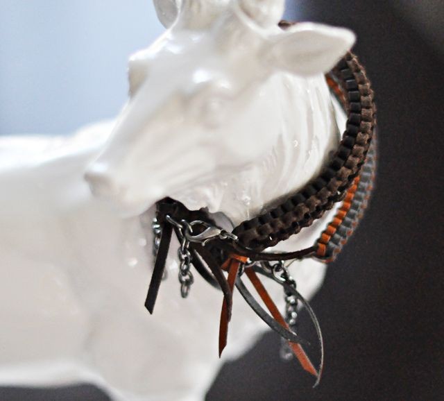 5. Далее обрежьте кожаные концы на столько, на сколько вам это покажется симпатичным (также см. фото выше).