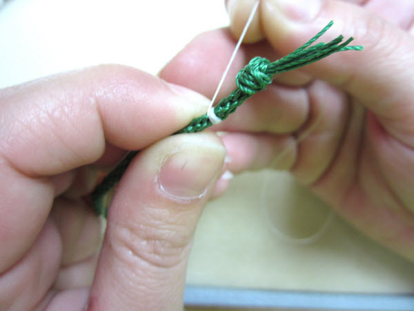 17. Используя струну D Nymo, завяжите узел близко к концу косы кумихимо.
