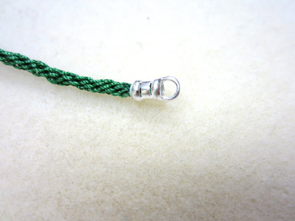 22. Наденьте обжимной наконечник на конец косы, чтобы закрыть нить Nymo, и обожмите его с помощью плоскогубцев.