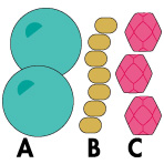 Для базовой конструкции плоского спирального браслета выберите три типа бусинок: круглый сердечник (A), наружная оплетка (B) и соединительный (С). Для типа A мы выбрали 6-миллиметровые круглые бусинки, для B - круглый японский бисер 11-го размера, а для C - 3-миллиметровые круглые огненные блестящие бусинки.