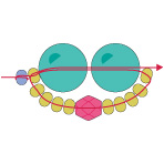 Нанижите на нить две бусины А, пять B, одну C и пять B. Вернитесь через две первые крупные бусины, как показано на рисунке. (Примечание: в зависимости от размера ваших средних бусин А количество внешних мелких бисеринок может варьироваться).