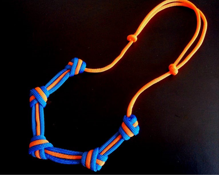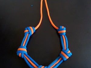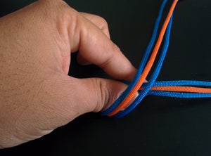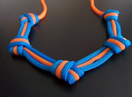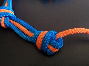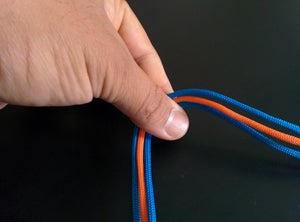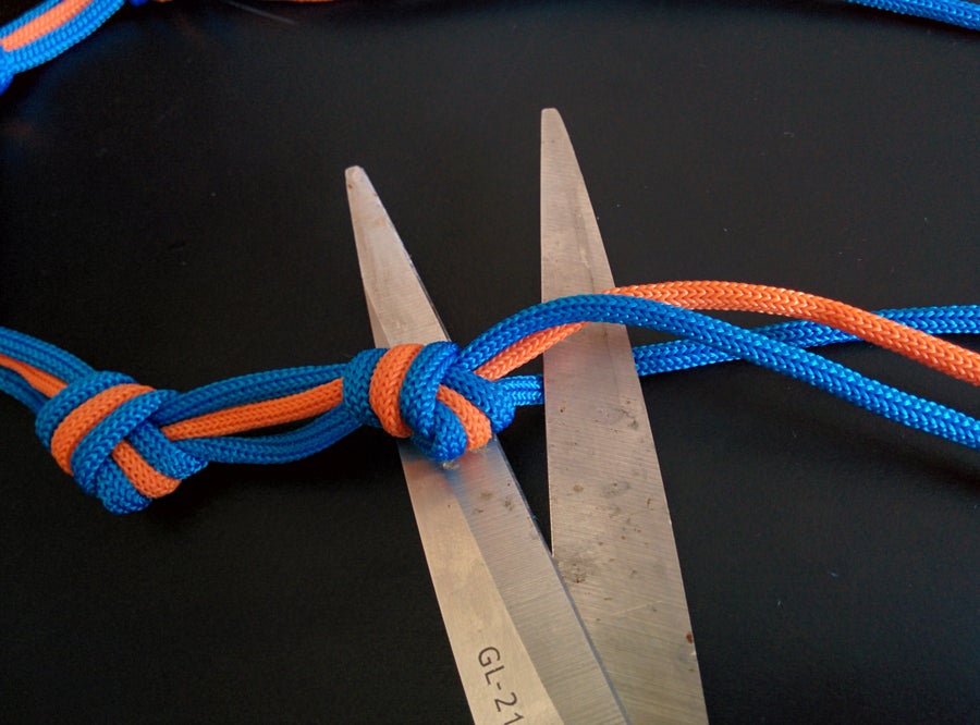 Закройте узел на каждом из концов паракордового пучка, аккуратно обрежьте и опалите концы шнурков по бокам, но оставьте нетронутым шнурок посередине.