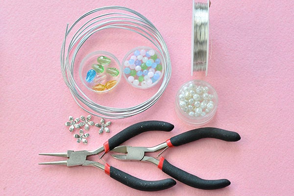 Шаг 1: материалы, необходимые для изготовления браслета-манжеты с цветами из стеклянных бусинок
