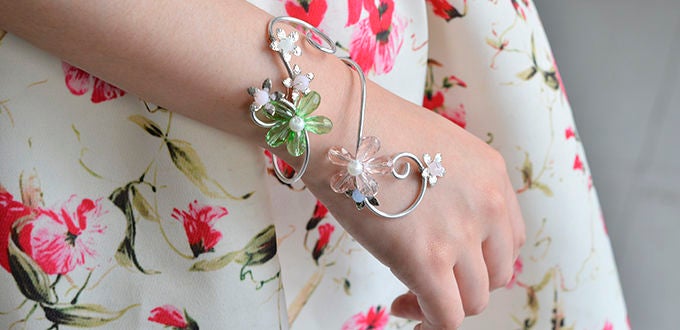 Теперь наш плетеный из проволоки и бусин браслет-манжета с цветочным декором из стеклянных и акриловых бусин готов. Но вы можете добавить еще какую-нибудь приглянувшуюся подвеску или бусины на свой вкус – не сдерживайте свою фантазию. Учтите, что представленный в этом мастер-классе способ изготовления браслета можно использовать для того, чтобы дать новую жизнь старым и уже невостребованным украшениям, «переплавив их в яркие, необычные и модные изделия. И вообще, придумывайте украшения со своим, оригинальным дизайном. И не только браслеты: алюминиевую проволоку можно использовать и для создания многих других видов ювелирных украшений, таких как серьги, кольца, манжеты для талии, ободки, заколки и другие украшения для волос и так далее. Они станут отличными подарками для ваших близких – подарят радость и тепло, оставят прекрасное воспоминание о вас, будут долго служить, поскольку практичны, долговечны и легки в уходе.