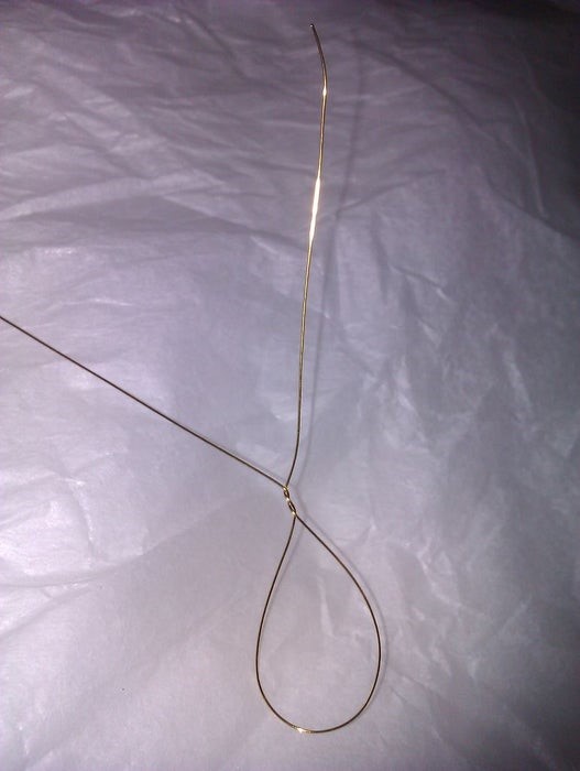 Сделайте петлю на одном ее конце, оставляя хвост примерно 4 см, и петлю длиной 6-8 см в выпрямленном состоянии.