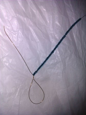 передвиньте 3-5 бусин с набранной низки бисера к петле