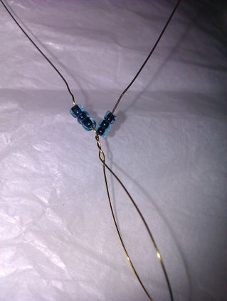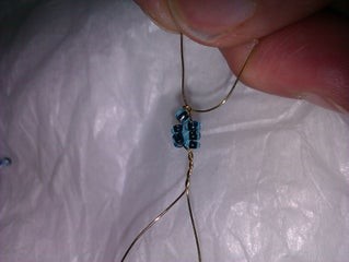наденьте 2-3 бусинки на короткий хвостик проволоки, который остался возле петли