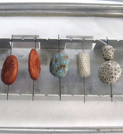 1. Поместите глиняные бусины в лоток для закрепления бусин (см. фото E). Закройте бусины тентом из алюминиевой фольги, чтобы они не пригорели. Выпекайте бусины в тостере, следуя инструкциям производителя. После запекания дайте бусинам полностью остыть.