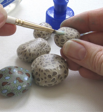 4. При помощи иглы проделайте отверстие в каждом шарике в форме гальки.