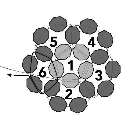 18. Проденьте нить через последнюю бисеринку из первого кольца.